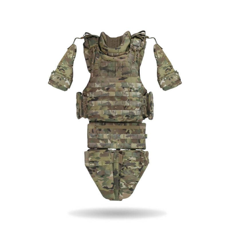 Бронежилет M з балістичним пакетом Militex 2 клас захисту МультикамБронежилет Kiborg Modular X-1 — це високоякісний армійський жилет зі збільшеною площею захисту, натхненний бойовими системами армії США. Завдяки восьми модулям (передня/задня частини, 2 плеча, 2 камербанди, бондаж із двох частин) та широкому набору сумісних захисних елементів, ця система дозволяє повністю адаптувати жилет під конкретні бойові задачі.Жилет має ергономічне регулювання, анатомічні плечові лямки зі змінними м'якими вставками та кишенями під балістику, демпферні вставки зі зносостійкою 3D-сіткою, посилену евакуаційну ручку, широкі MOLLE-панелі спереду і ззаду, а також швидкоскиди у ключових точках.Комплектація: